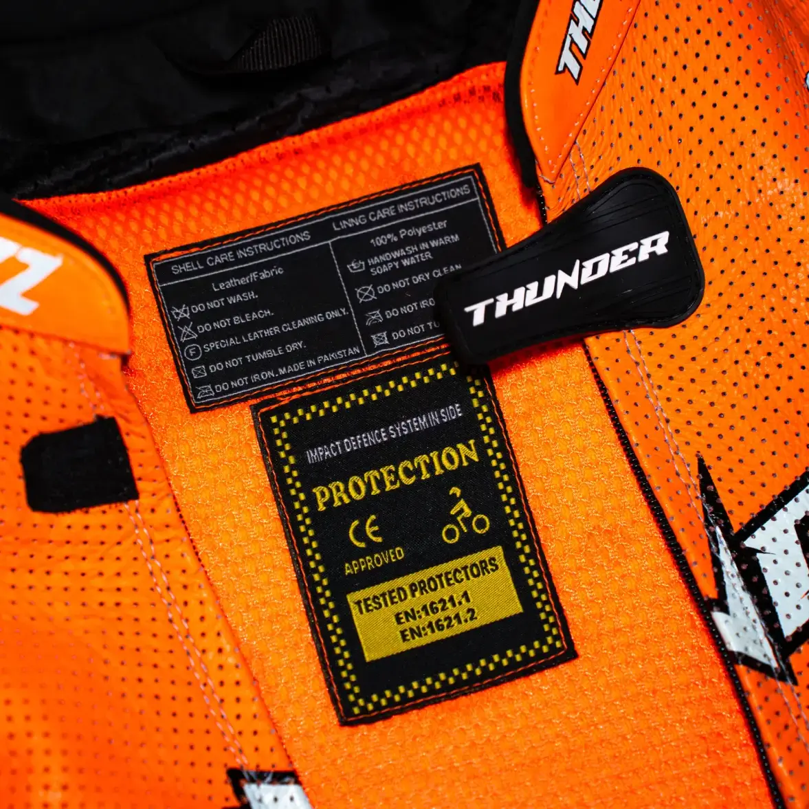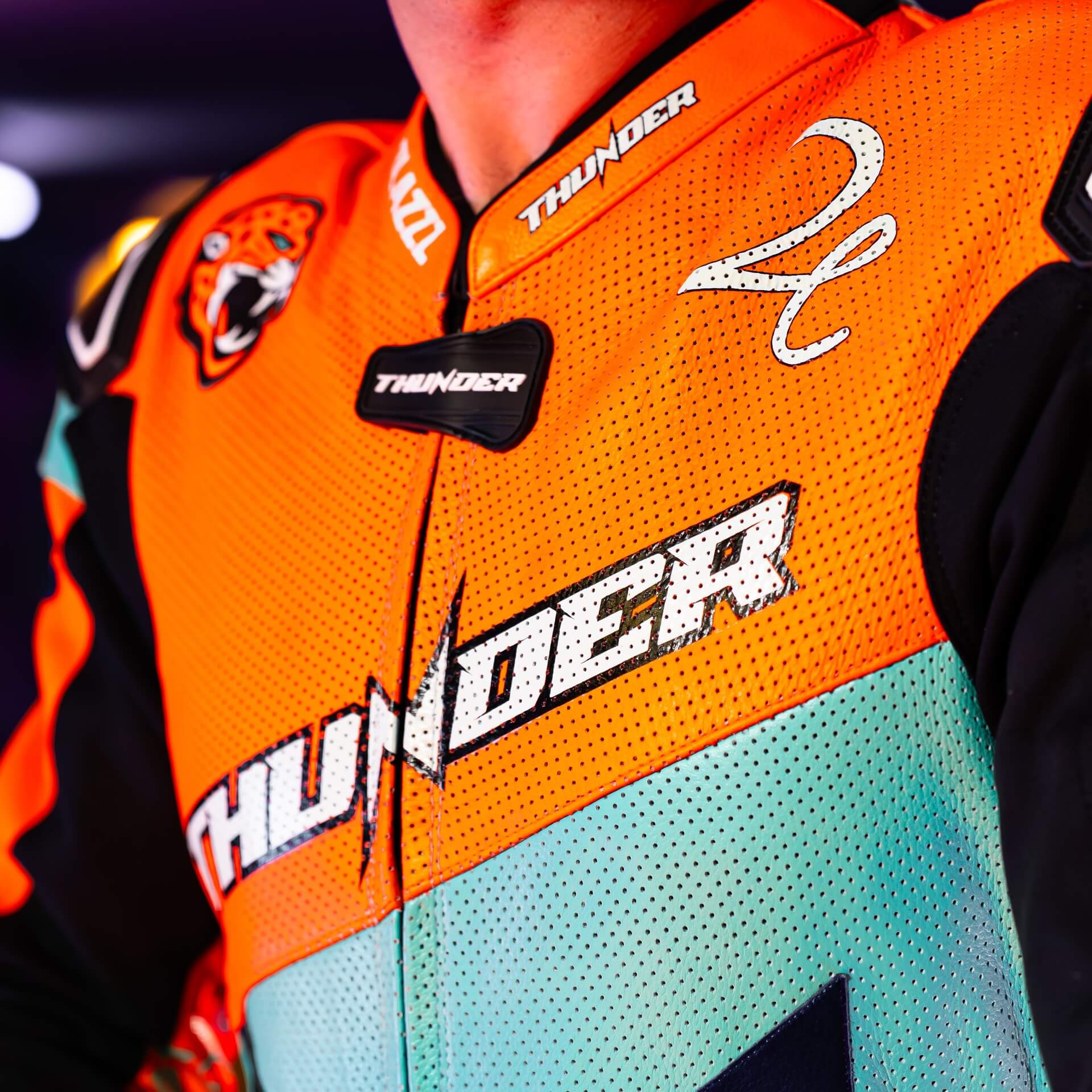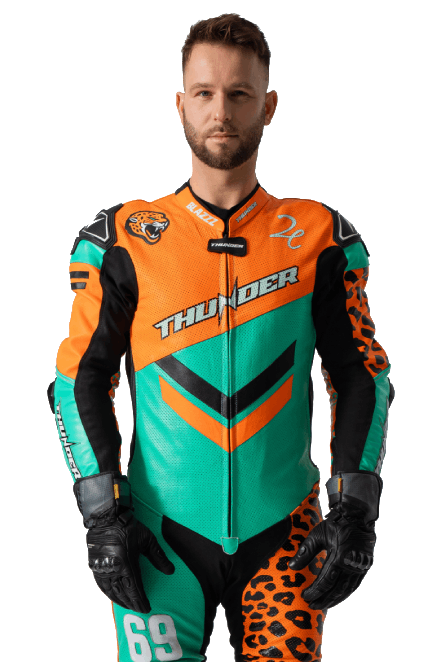 Tworzymy kombinezony szyte na miarę oraz w standardowych rozmiarach, zachowując jeden wspólny mianownik: ochronę klasy sportowej, precyzję wykonania i komfort, który czujesz od pierwszego kilometra. Każdy kombinezon Thunder Racing to indywidualny projekt. Tworzysz własną kolorystykę, dodajesz logotypy, numery startowe i detale graficzne, które sprawiają, że Twój sprzęt wyróżnia się na torze i ulicy — bez kompromisu w kwestii ochrony. Styl nie jest dodatkiem. Jest częścią Twojej tożsamości.
